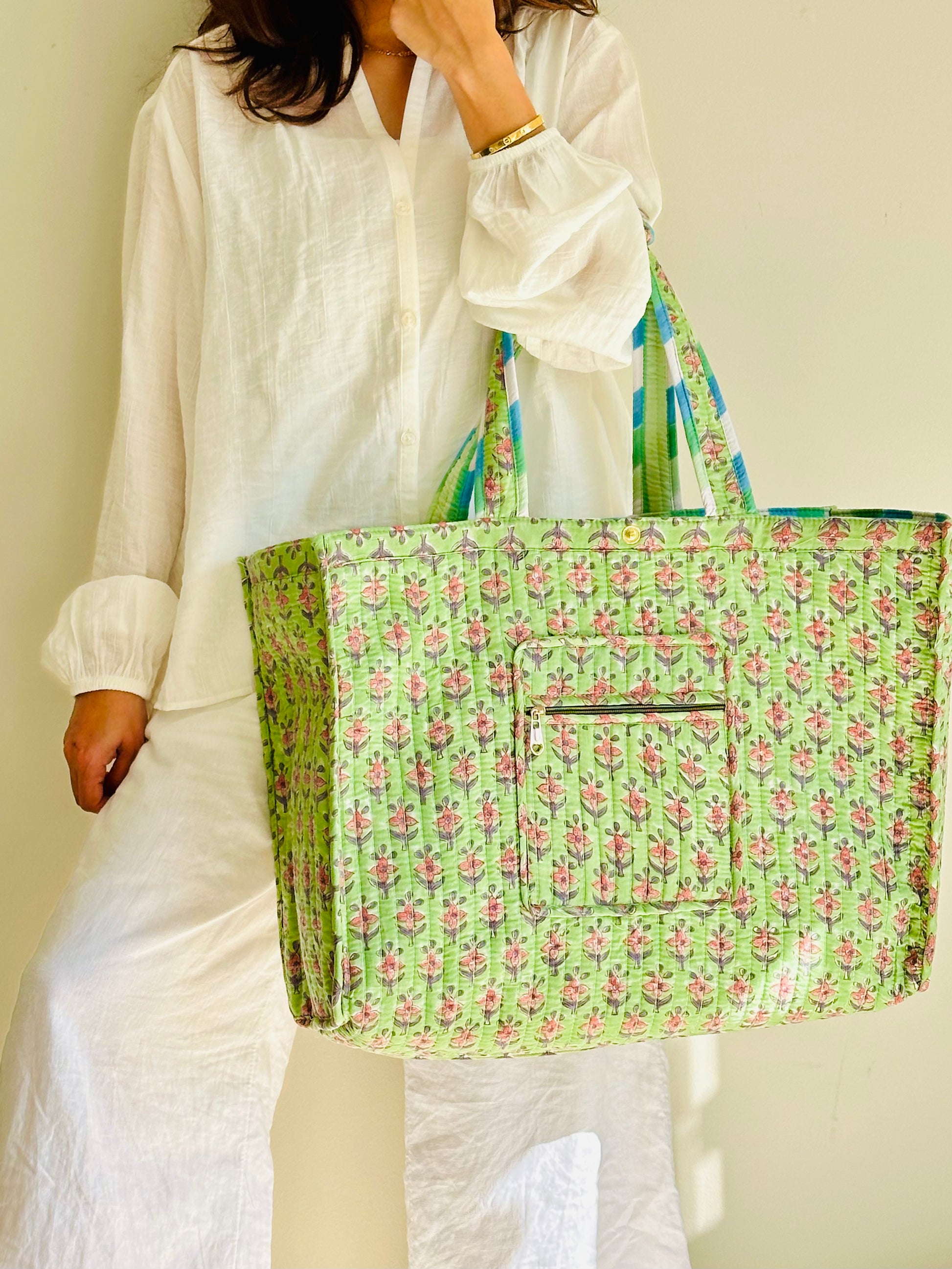 Ganga Tote Bag – Reversible Quilted Cotton Tote | Hand-Printed Travel Bag