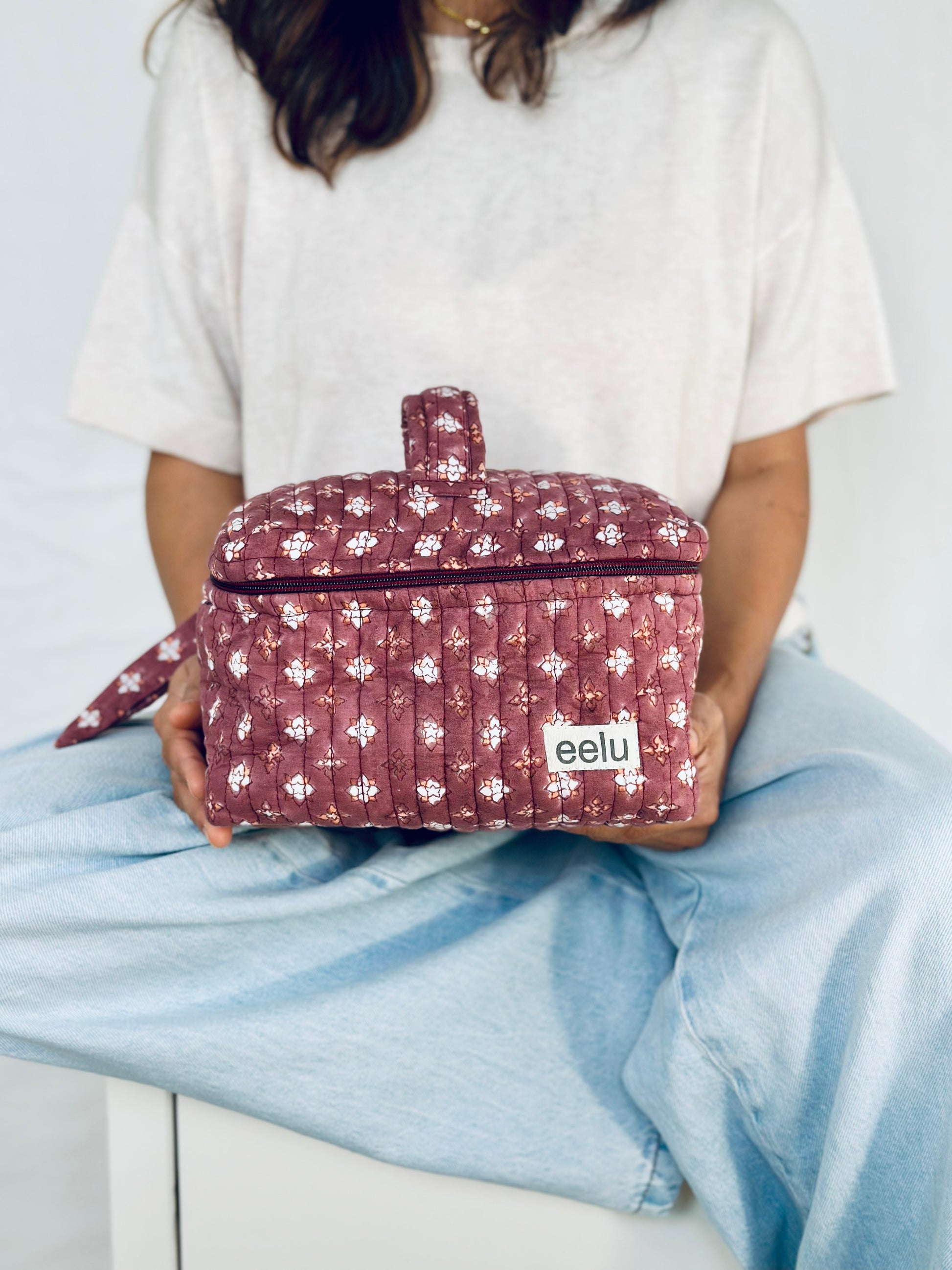 Gulabi Vanity Case – Handprinted Quilted Travel Organizer Bag