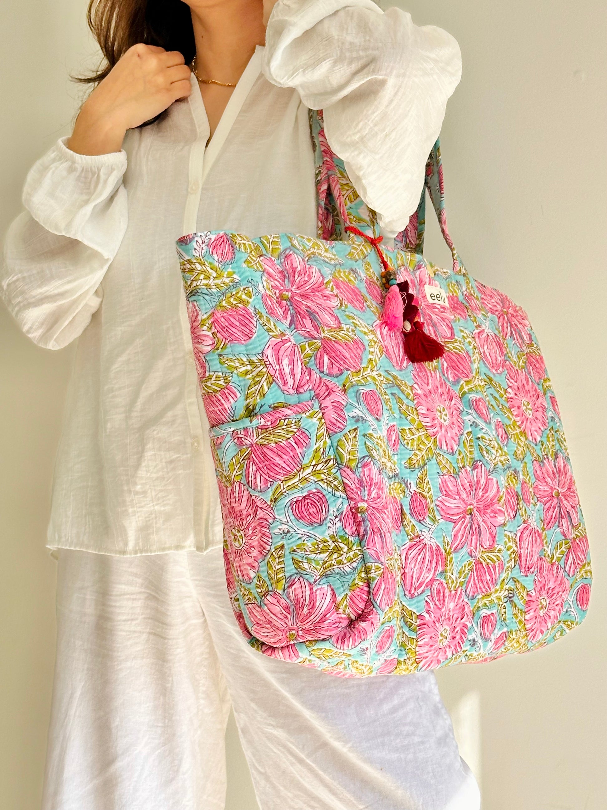 Anandi Tote Bag – Reversible Quilted Cotton Tote | Hand-Printed Travel Bag