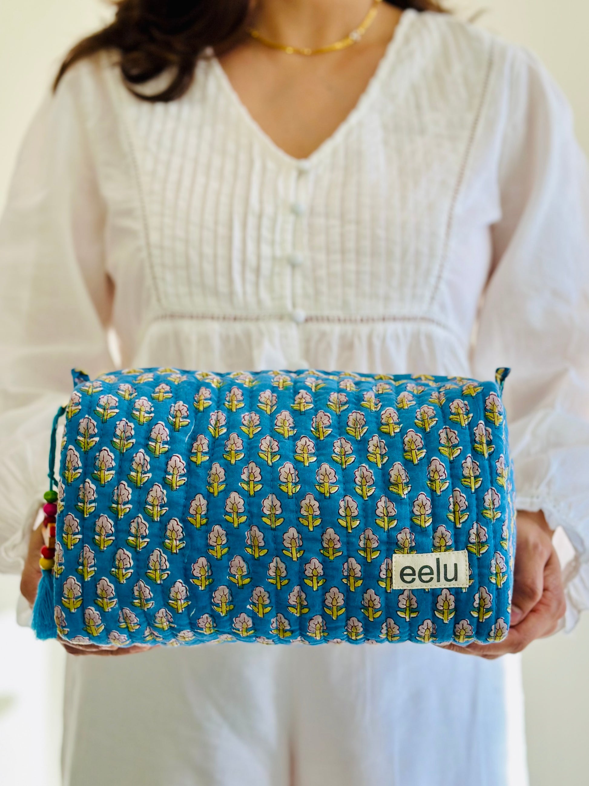 Neela Quilted Makeup Pouch – Handcrafted Cotton Travel Bag | Small & Large