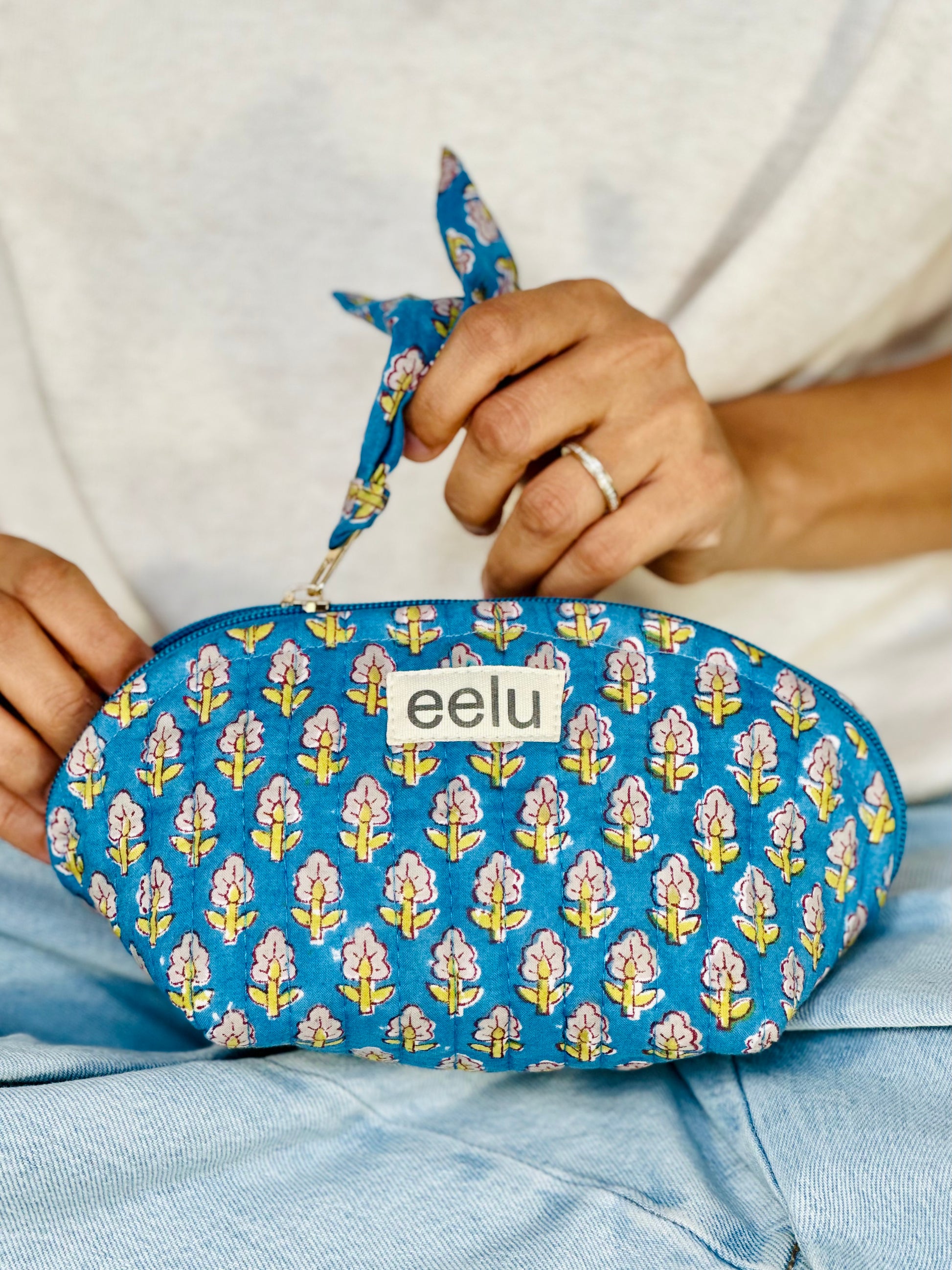 Neela Petite Pouch – Quilted Cotton Coin & Travel Bag | Hand-Printed Mini Case