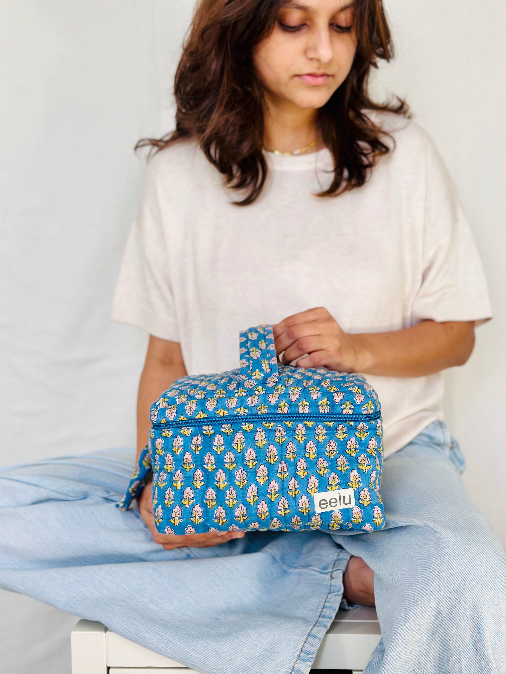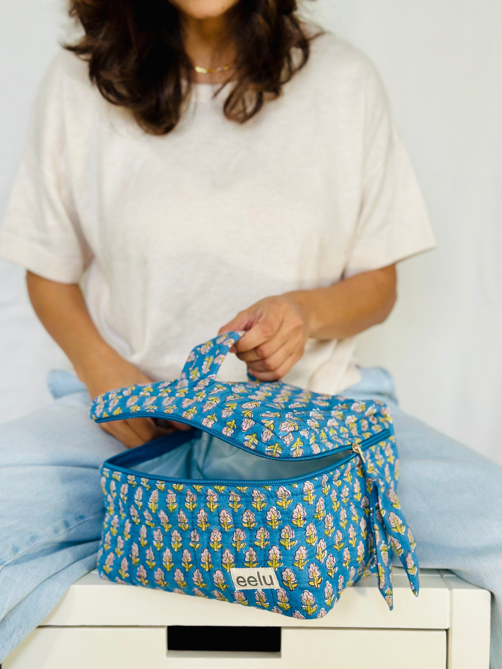 Neela Vanity Case – Handprinted Quilted Travel Organizer Bag