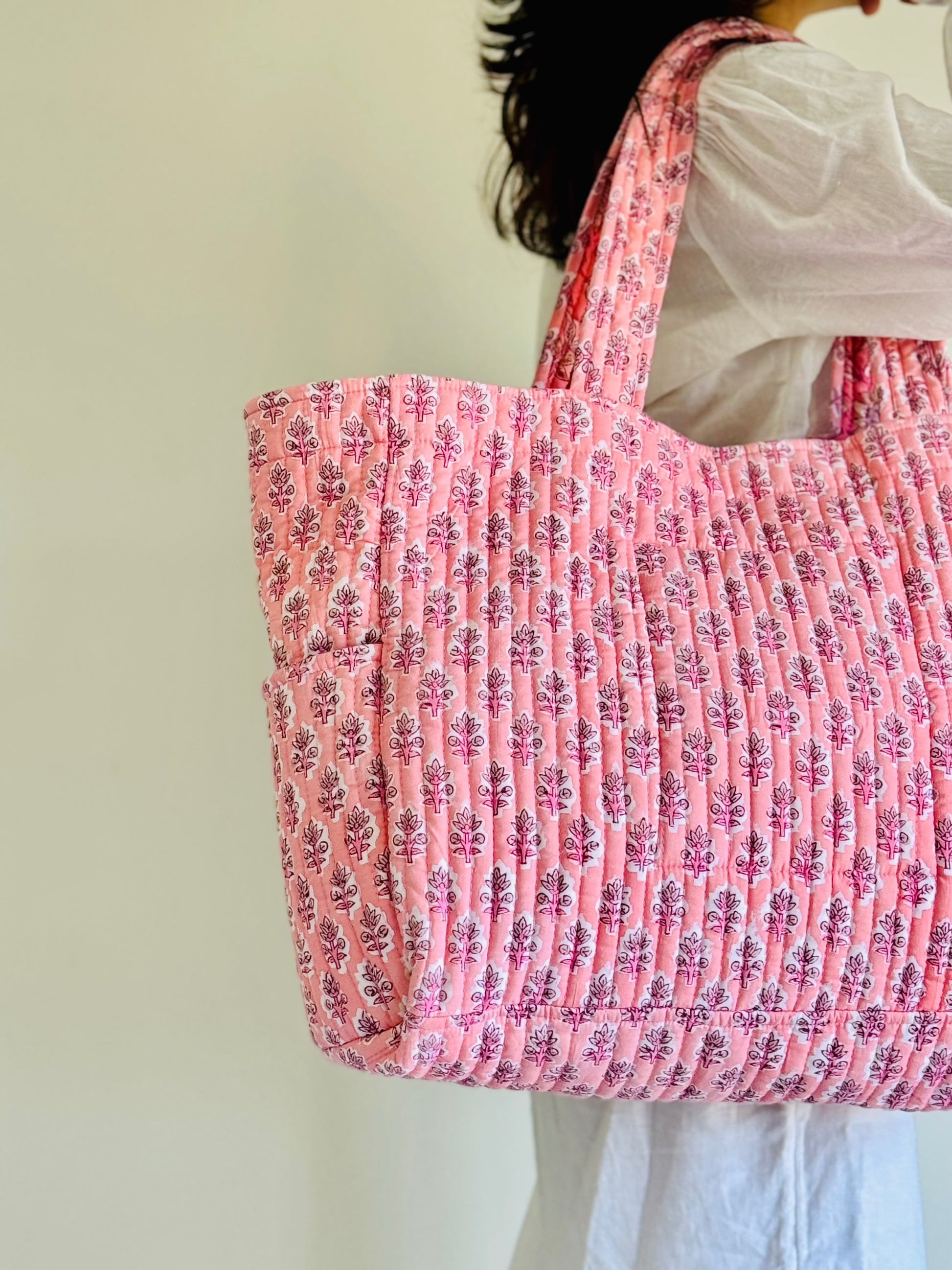 Pakhi Tote Bag – Reversible Quilted Cotton Tote | Hand-Printed Travel Bag